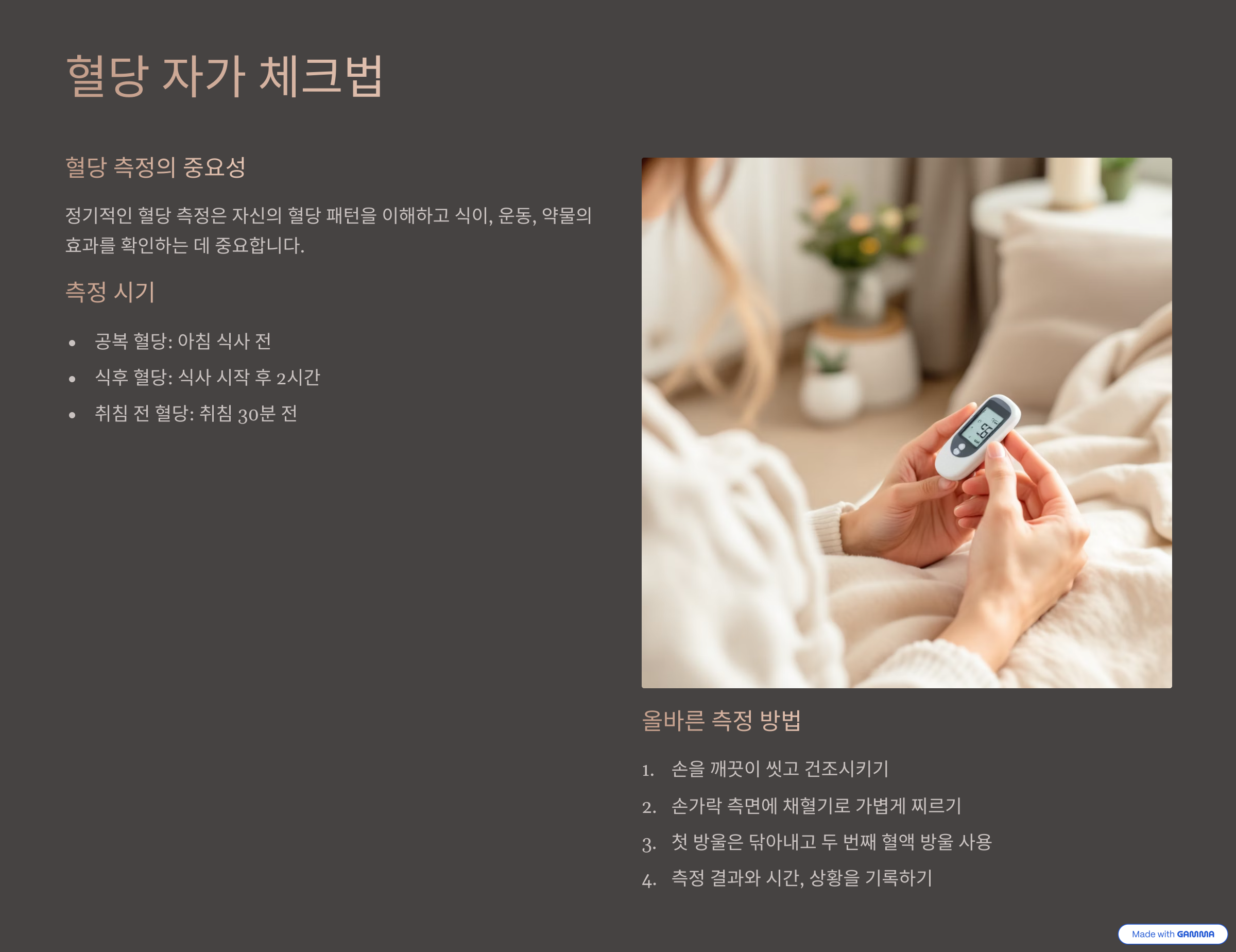 그래서 혈당을 이해하고, 내 상태에 맞는 관리를 시작하는 것이 건강한 삶을 위한 첫걸음이에요. 이 섹션이 혈당에 대한 감을 잡는 데 도움이 되었길 바래요!